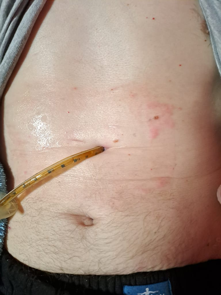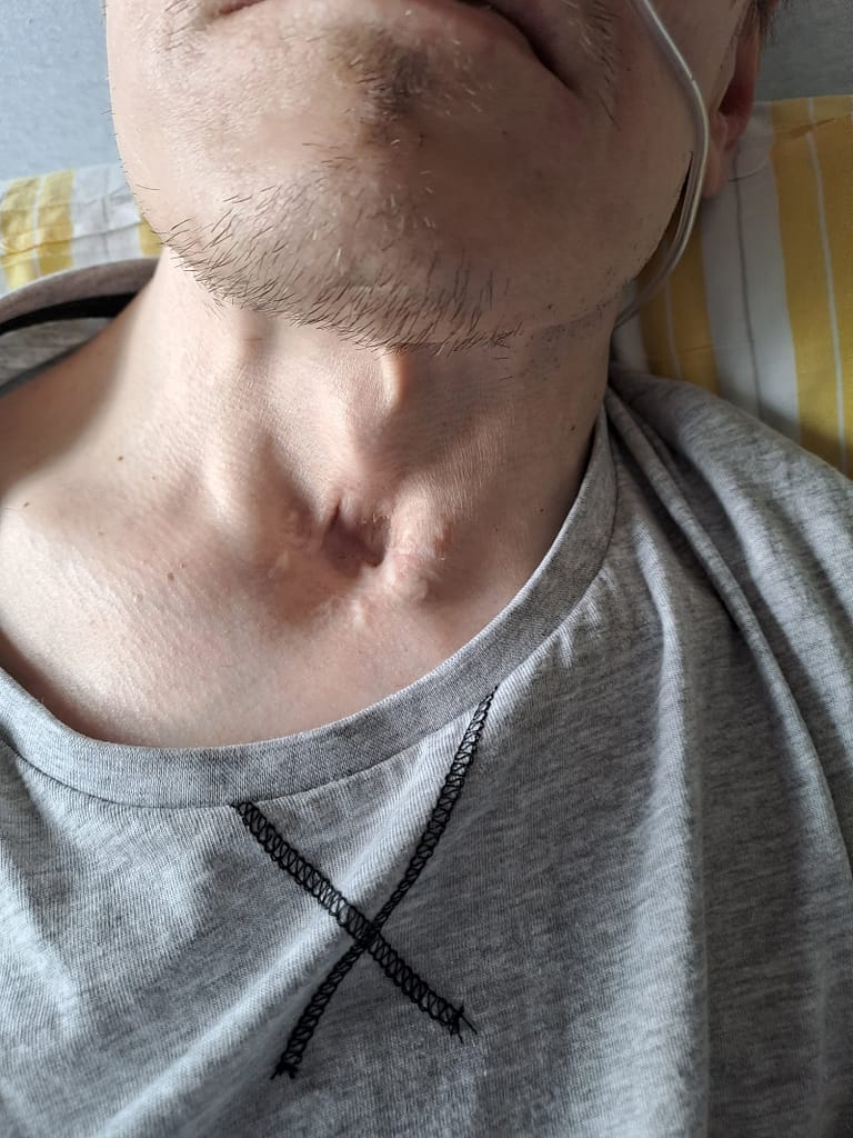 After the second surgery, I was sent back to the rehabilitation center. There, I learned to walk with a rollator (a walking aid with wheels) and navigate using a wheelchair. Ten days into my rehabilitation, a speech therapist decided to examine my swallowing function. They inserted a tube through my nose and observed on a monitor how I ate and drank, paying particular attention to my swallowing. Unfortunately, after this procedure, I could no longer swallow normally. They inserted a feeding tube through my nose, and I was transferred to a military academy for further evaluation and treatment of my swallowing issues.